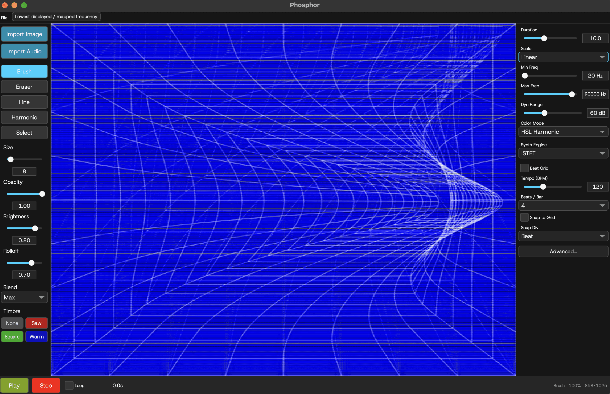 A free spectral synthesiser. Paint images. Hear sound